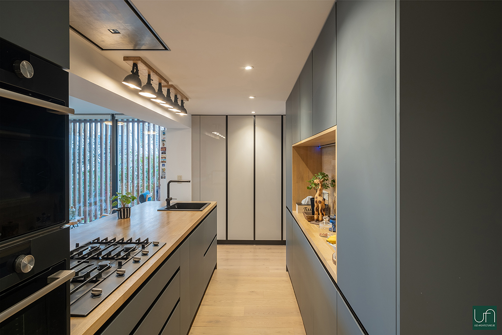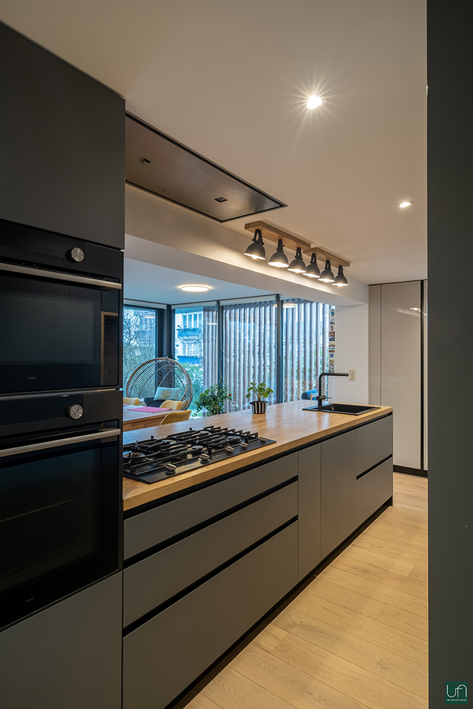Les demandes du maître d’ouvrage étaient d’agrandir l’espace cuisine actuel, de créer une pièce supplémentaire en relation avec le jardin ainsi qu’une chambre avec salle de bain à l’étage et d’amener plus de luminosité tout en gardant leur intimité.