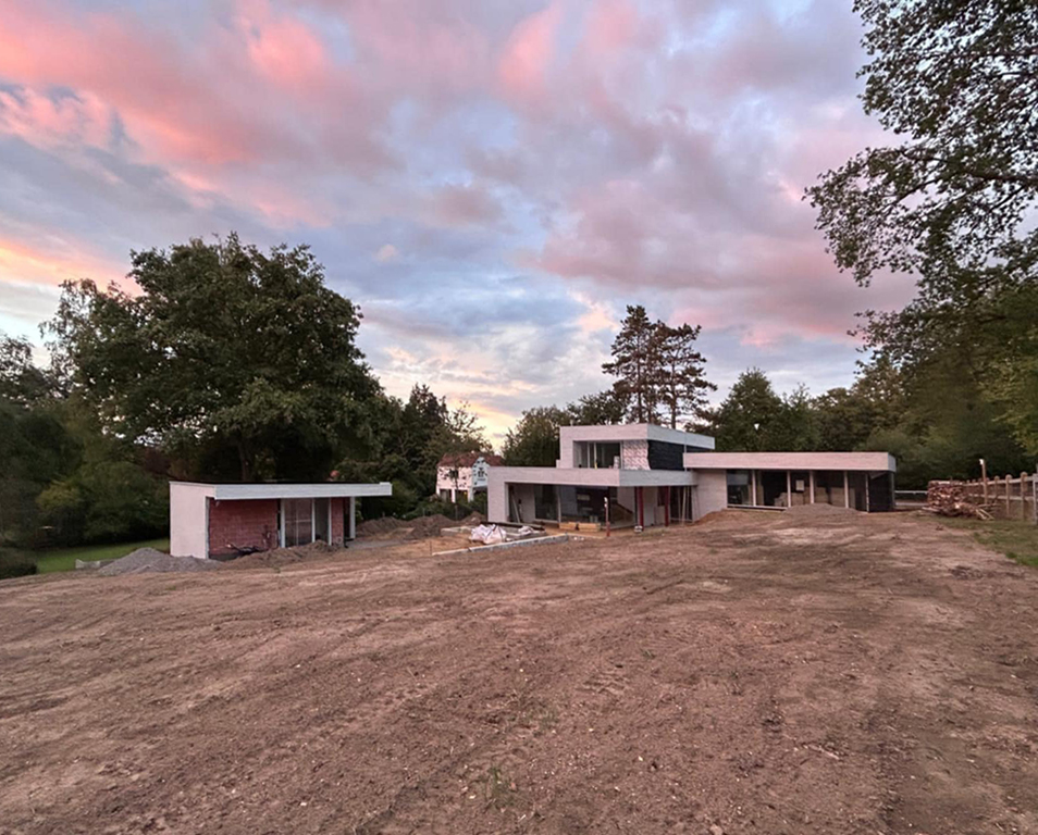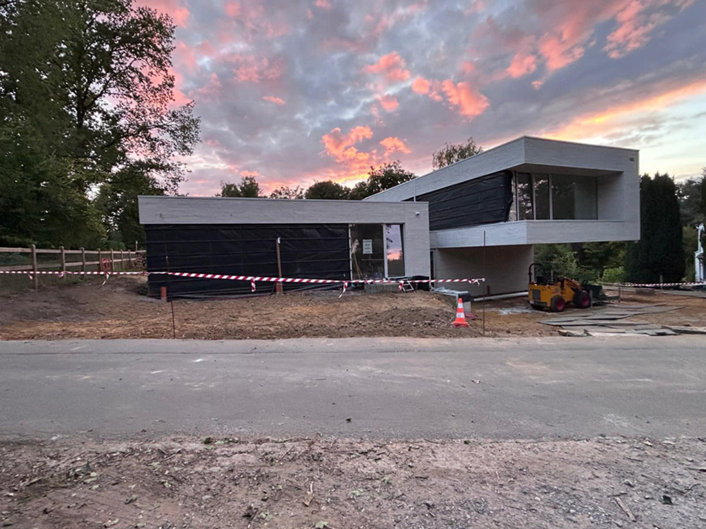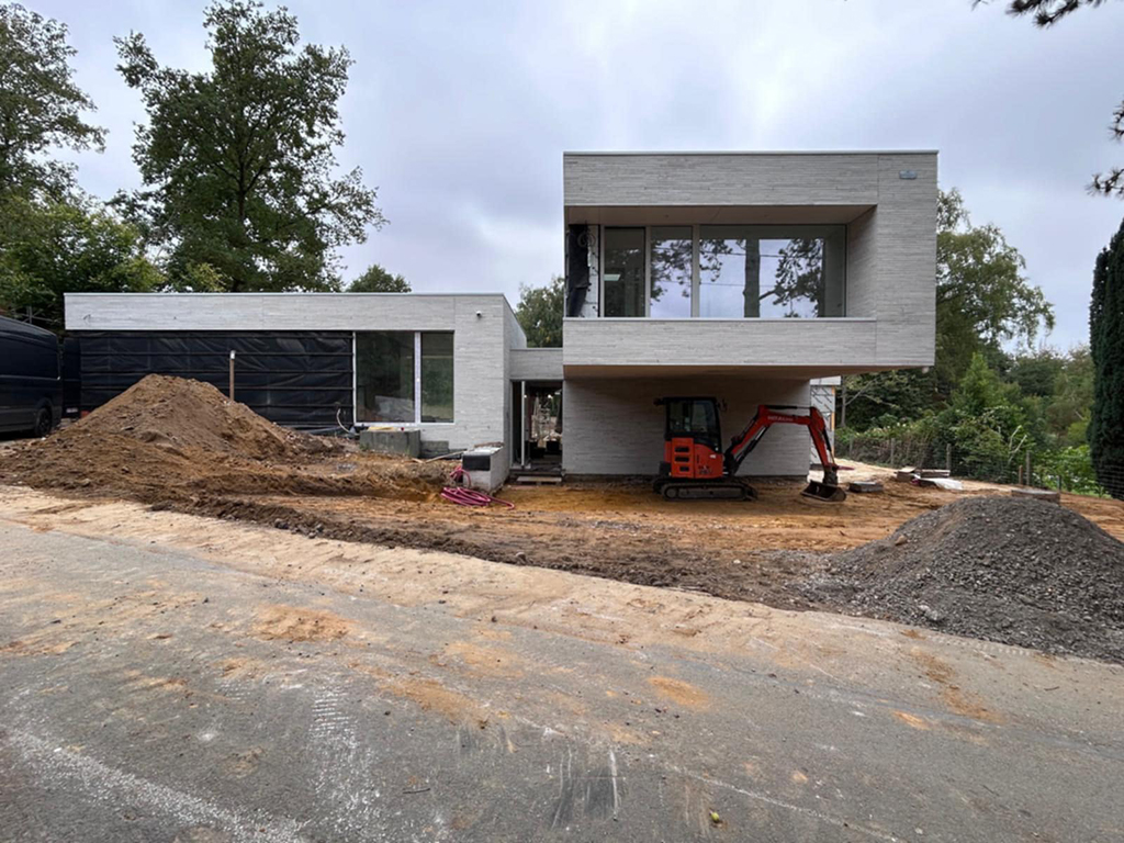 Cette réalisation contemporaine située à Lasne s’intègre à son contexte par une volumétrie sobre et épurée.